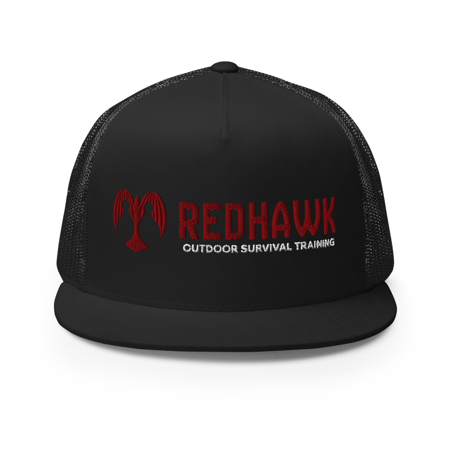RedHawk Embroidered Trucker Mesh Hat in Black